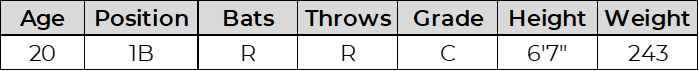 Guerrero has plus bat speed and raw power but showed swing-and-miss tendencies in his limited 29 plate appearances. At the plate he has a simple setup with his hands on his shoulders but can possibly lose his timing with a large leg kick. He is already physically mature and do not expect more physical projection. He remains a long-term development project.