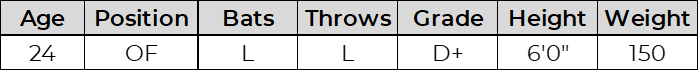 Smith showed steady bat to ball ability and athleticism. The speed and defensive skills are present, but the power has yet to show up consistently in games. How the bat develops will determine whether he settles into an everyday role or depth option.