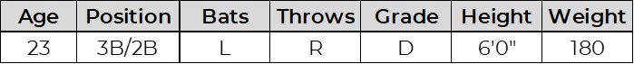 Morlando looks the part physically but did not consistently impact the ball. His standout at bat I saw was a 10 pitch walk that started off 0-2 against Jakob Wright (LHP). He needs more offensive and defensive reps after limited pro experience.
