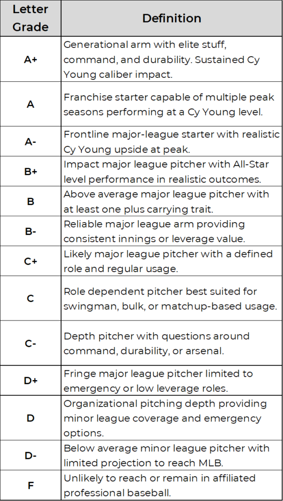 Below is a revamped player grading key that is focused on pitchers.