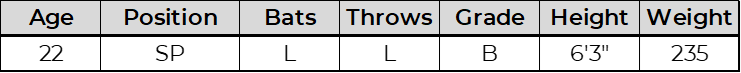 Chalas has a lanky and projectable frame with good extension from a three-quarter arm slot. He leaned heavily on a 96 to 97 mph fastball with arm side run, throwing it more than 70 percent of the time. His primary secondary was an 83 to 84 mph slider that he used as a chase pitch. While the velocity stands out, he will need to continue improving both the consistency and effectiveness of his secondary offerings to solidify a role.
