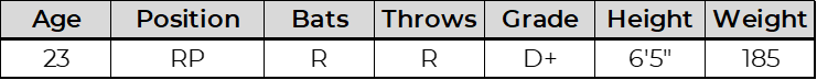 Victor comes straight over the top and showed power stuff, working primarily with a high 90s four-seam/sinker that he leaned on heavily. He mixed in a high 80s cutter that generated significant swing and miss along with an occasional low 80s slider. The velocity and whiff ability stand out, but he is heavily reliant on the fastball. He could get a chance in an MLB bullpen with potential for high-leverage situations.