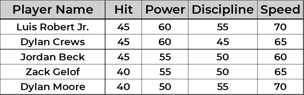 Bolte’s range of outcomes depends heavily on how his hit tool develops. His ceiling resembles Luis Robert Jr., a player capable of great peaks but who has struggled with year-to-year consistency with his floor being that of a part-time or platoon player.