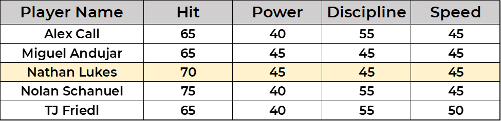 Lukes is a contact-first hitter with a plus hit tool, graded at 70. That mark is likely a bit inflated since most of his matchups came against right-handed pitching.